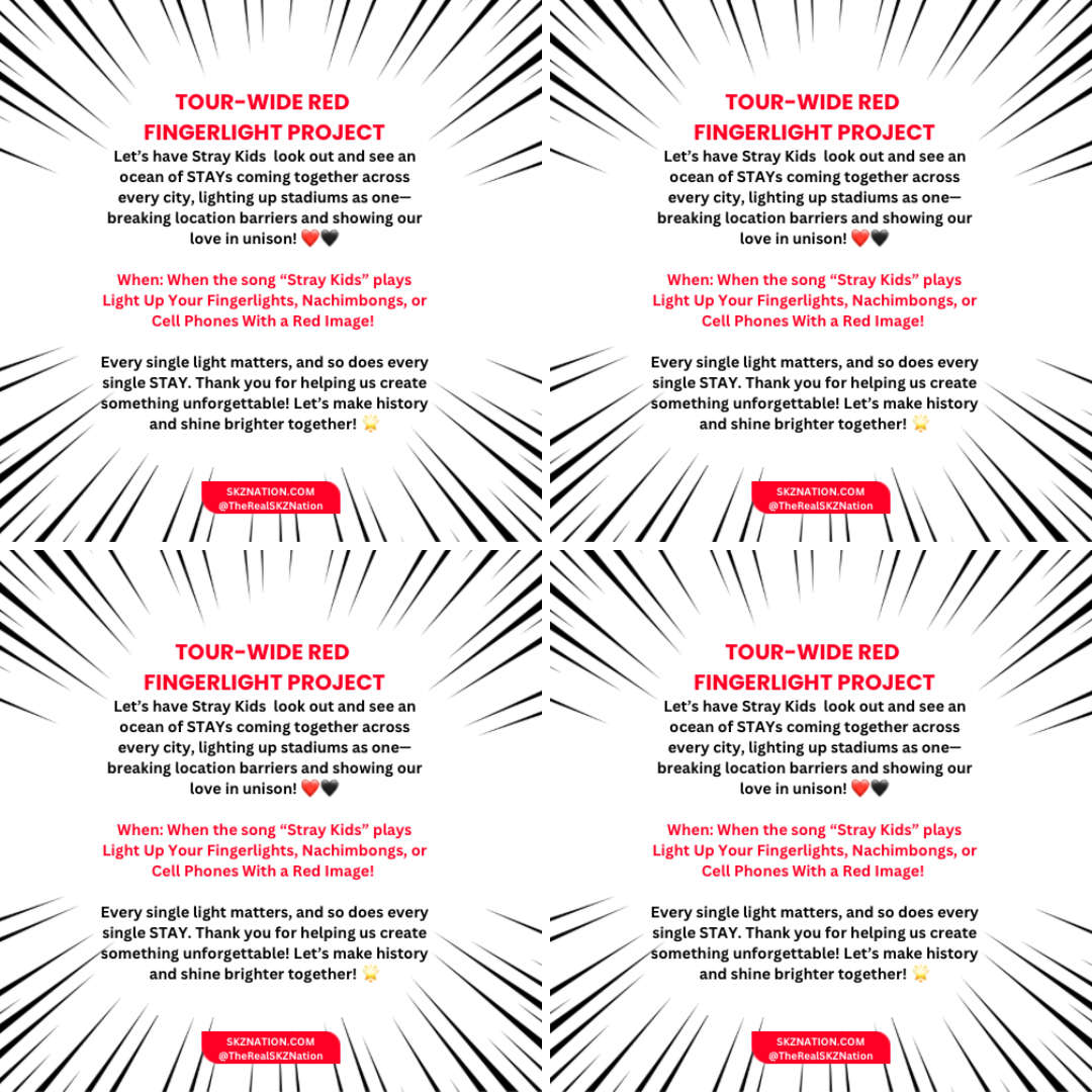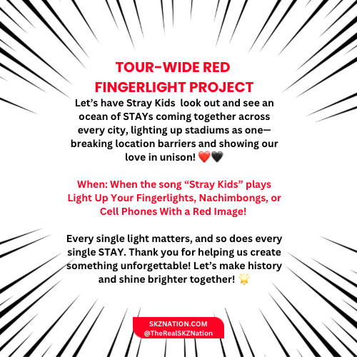 SKZNation’s TOUR-WIDE RED FINGERLIGHT PROJECT is officially in motion, and we need YOUR help to make it a reality! 🛑✨