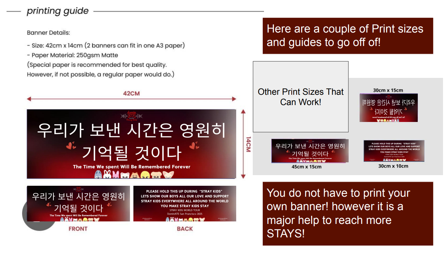 We want every STAY to have the chance to show their love for Stray Kids and each other! Whether you're helping us print or pass out banners, or simply holding one up during the show, your support means the world to us. Together, we can make this a beautiful moment to remember. Let’s do this, STAYs! 💙