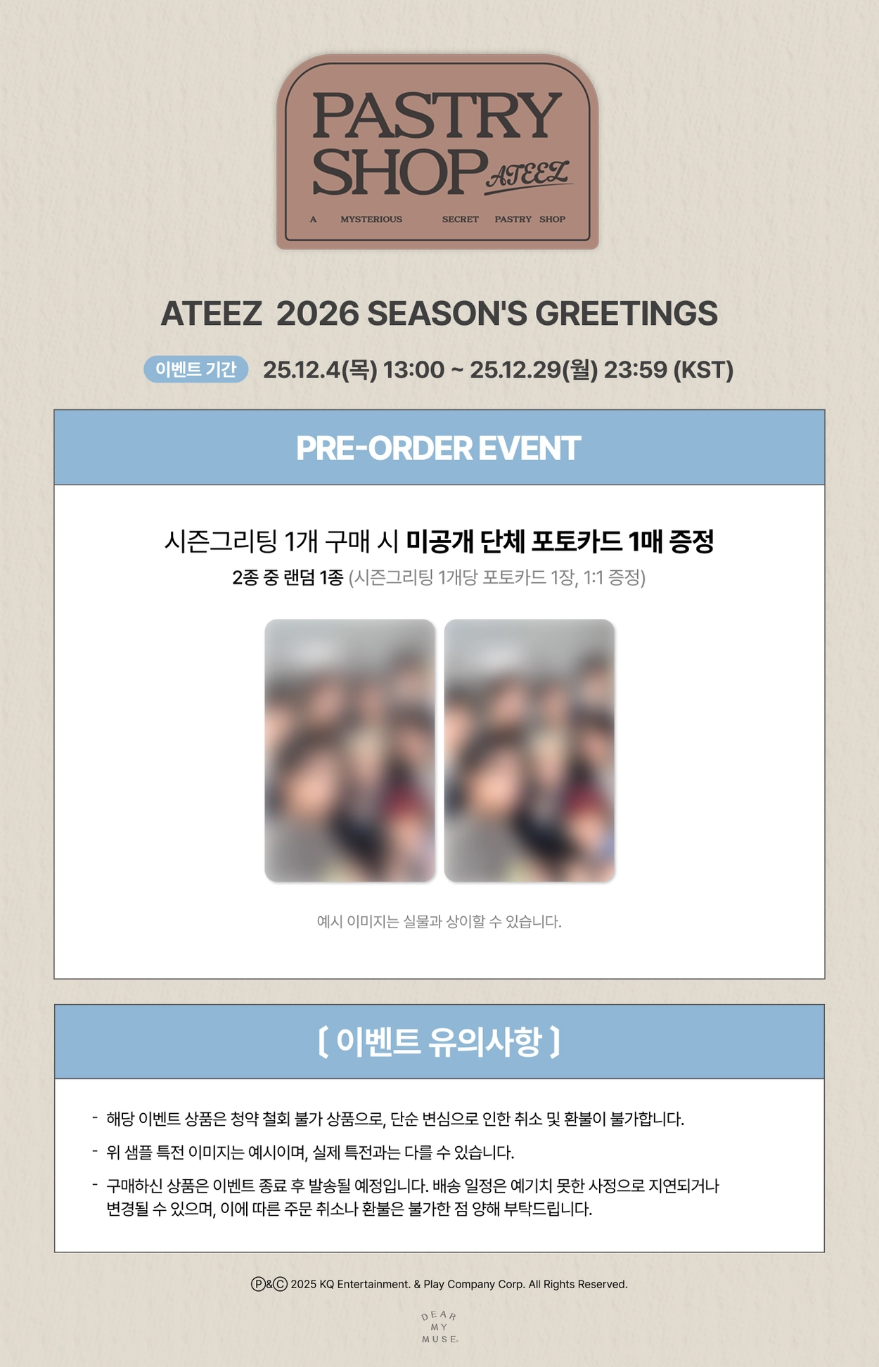 [POB] [PRE-ORDER] ATEEZ 2026 SEASON’S GREETINGS PASTRY SHOP