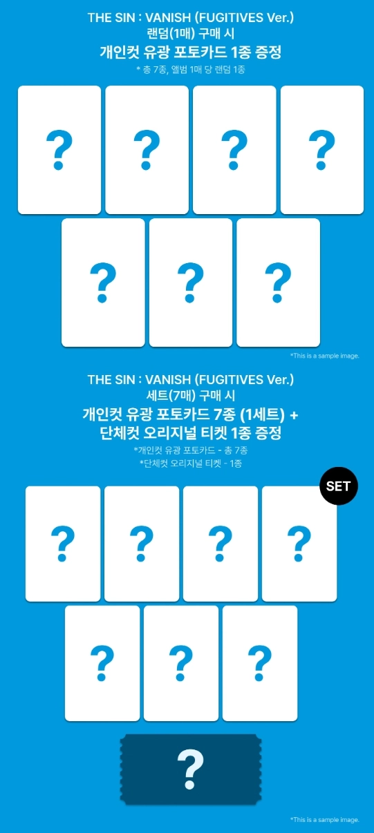* [FUGITIVES Ver.] 7종 1세트 구매 시, 개인컷 홀로그램 포토카드 7종 세트 증정